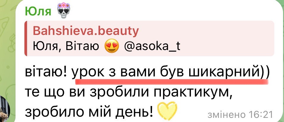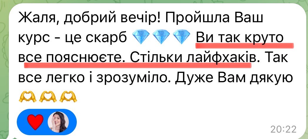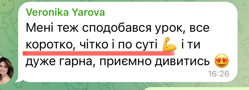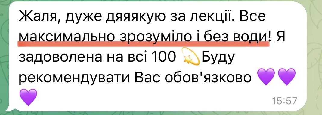 Особисті поради від мене і доступ до спільного чату з іншими учасниками.